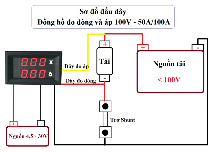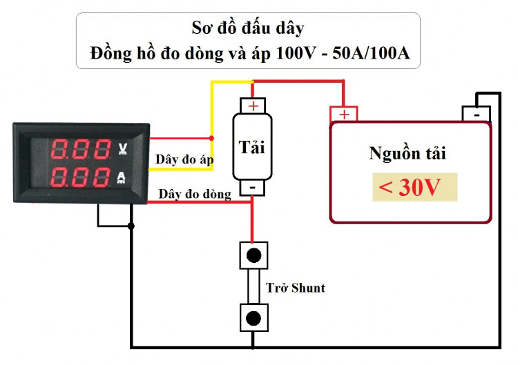 Cách đấu nối: Sử dụng Thêm Trở Shunt 100A để đo