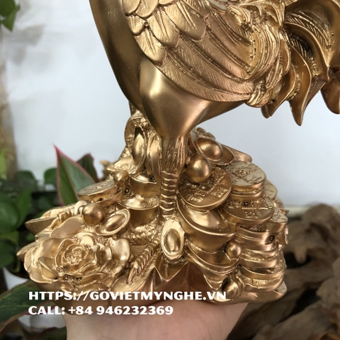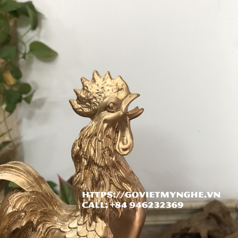 Tượng đá con gà trống trang trí phong thủy nhà cửa - Chiều cao 22cm - Màu nhũ đồng